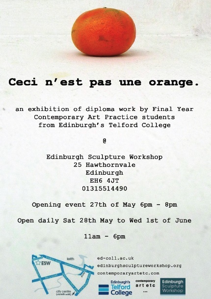 Edinburgh’s Telford College is delighted to be returning to the Edinburgh Sculpture Workshop for the College’s annual HND Contemporary Art Practice’s Final Year Show which will be exhibiting at the Newhaven workshop from Saturday 28 May to Wednesday 1 June 2011.