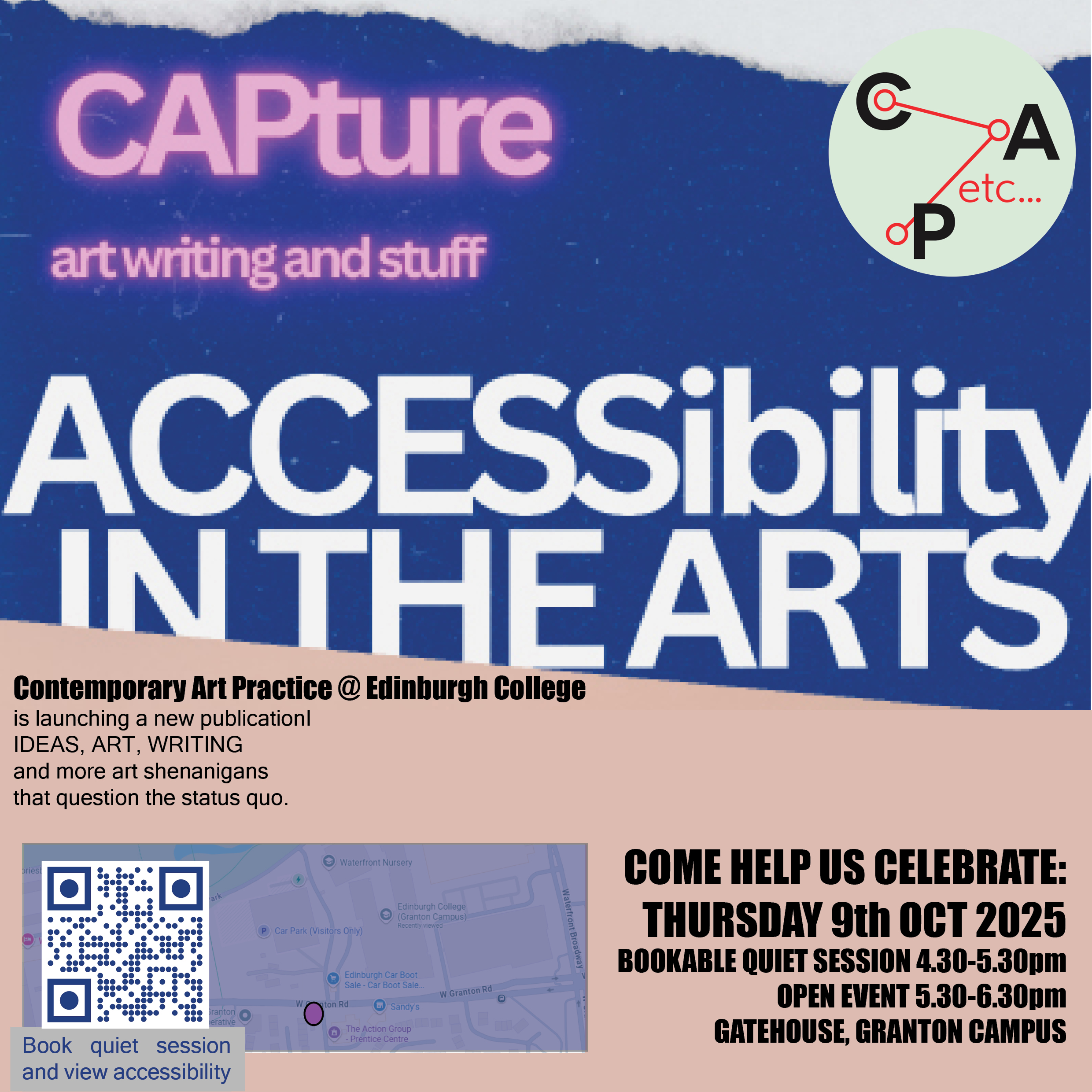 We want the publication to be inclusive and representative of the art community’s views so if you have any ideas you’d like to explore please get in touch at: capture.artetc@gmail.com or better still let’s have a chat at the launch.
