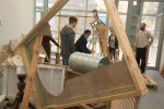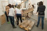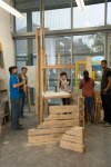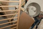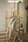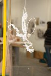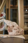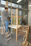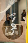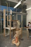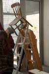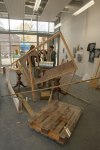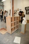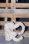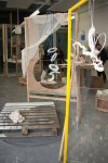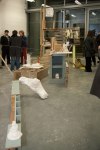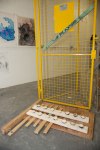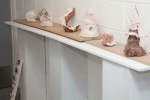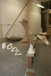 Life-size documentation, come sculptures, dominate the upper gallery. Interior and exterior scenes ubiquitous to run-down, concrete housing estates around the country are showcased and transformed into 3D works with Nelson’s scavenged and reused materials- providing a rich textural language of his own work alongside patinaed architectural features. Incongruous 80s arcade machines also form parts of these sculptures, the technology and aesthetic of these pieces not quite matching the decaying beauty of the wooden beams or the flaking deterioration of salvaged metal but a genre marker of an era none-the-less.