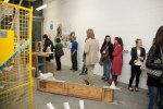 Apprehensively, I enter through an ominous metal security door (from New York), scrawled with graffiti tags, which creaks and then slams behind me. Instantly, I leave the gallery, and I am consumed by contrary feelings of both home and anxiety. The bones of the place creak as I explore the crumbling façade and damp innards of this building steeped in an melancholic fragility- it feels as if it could disintegrate at any moment. An unfettered harsh light from a bare-bulb and the flicker of a strip light highlight the Matrix-type glitch of this construction, of a construction, within a construction and expose a bookshelf cleared of life but layered in grime.