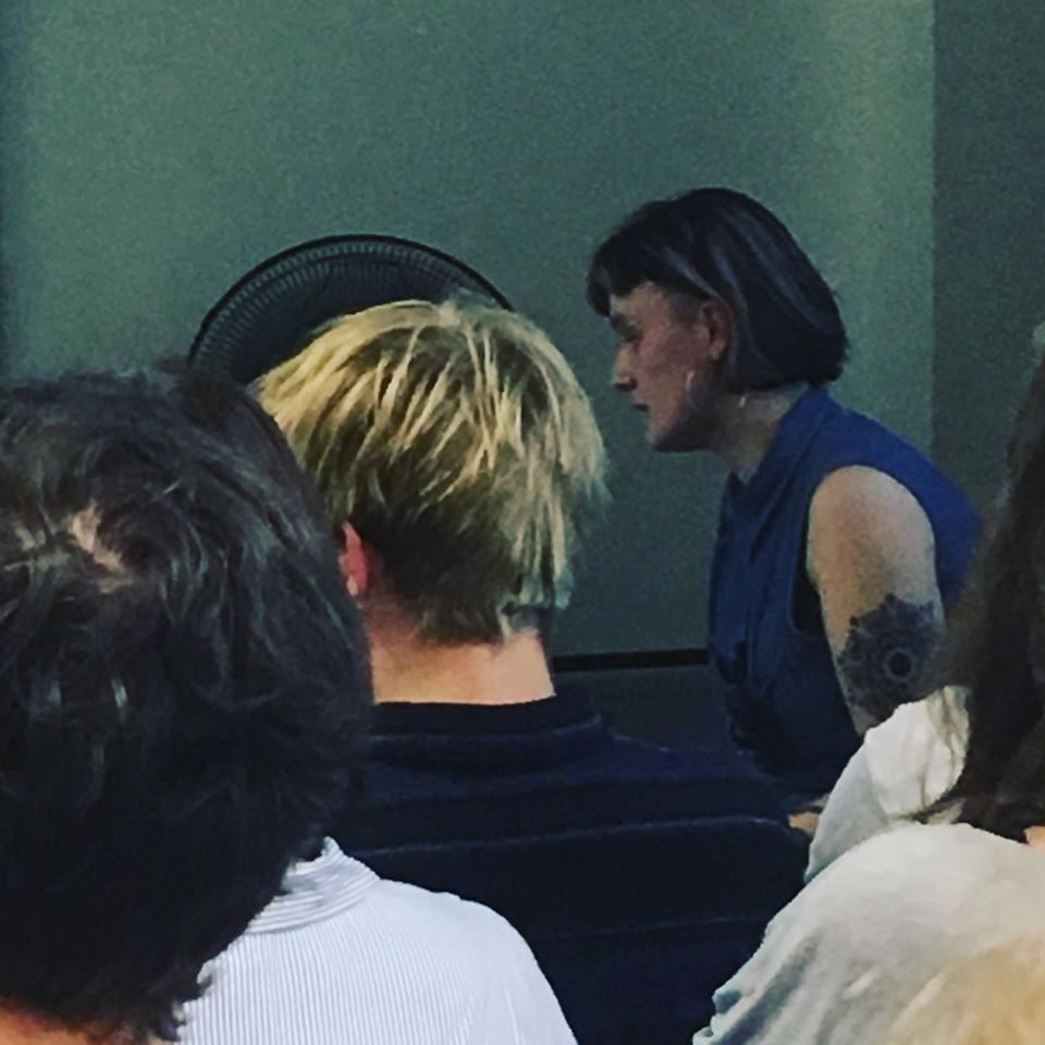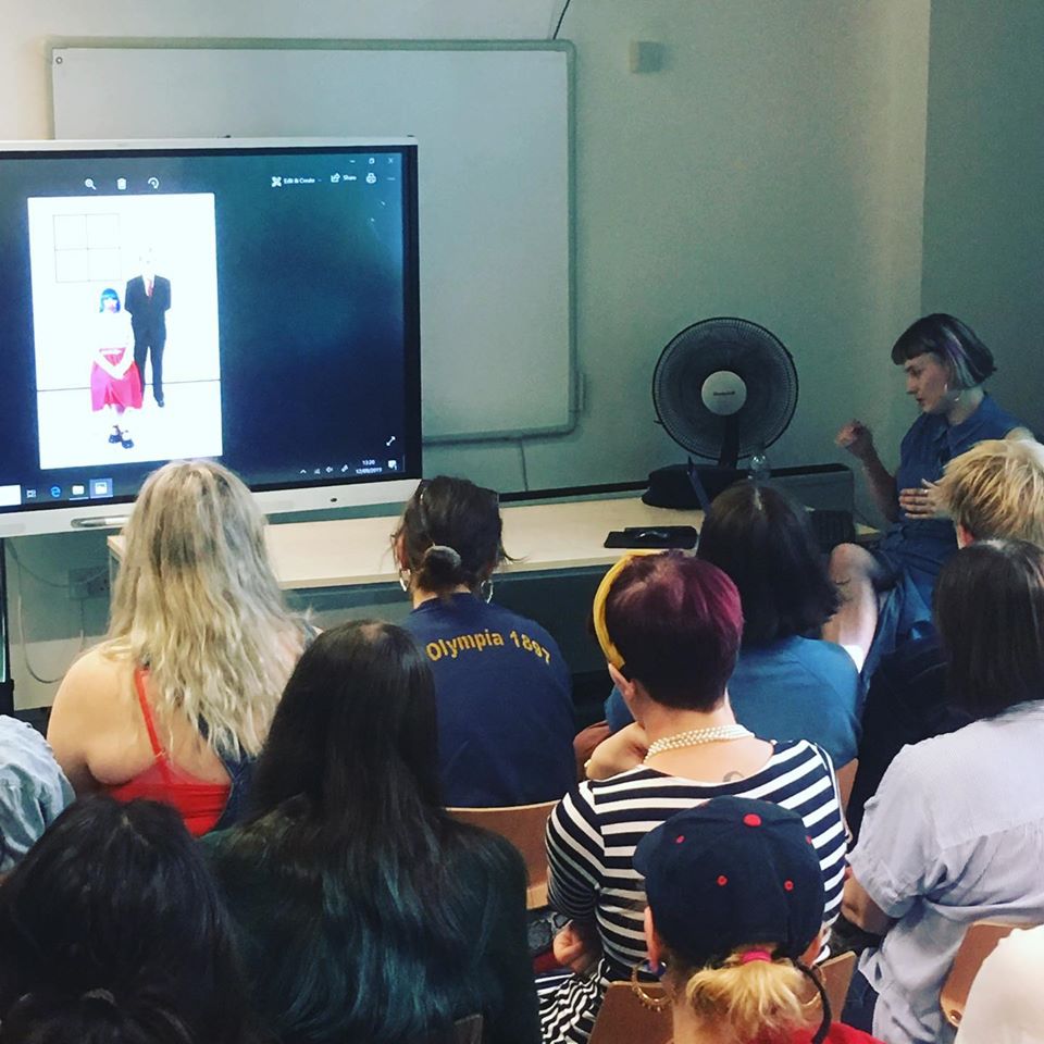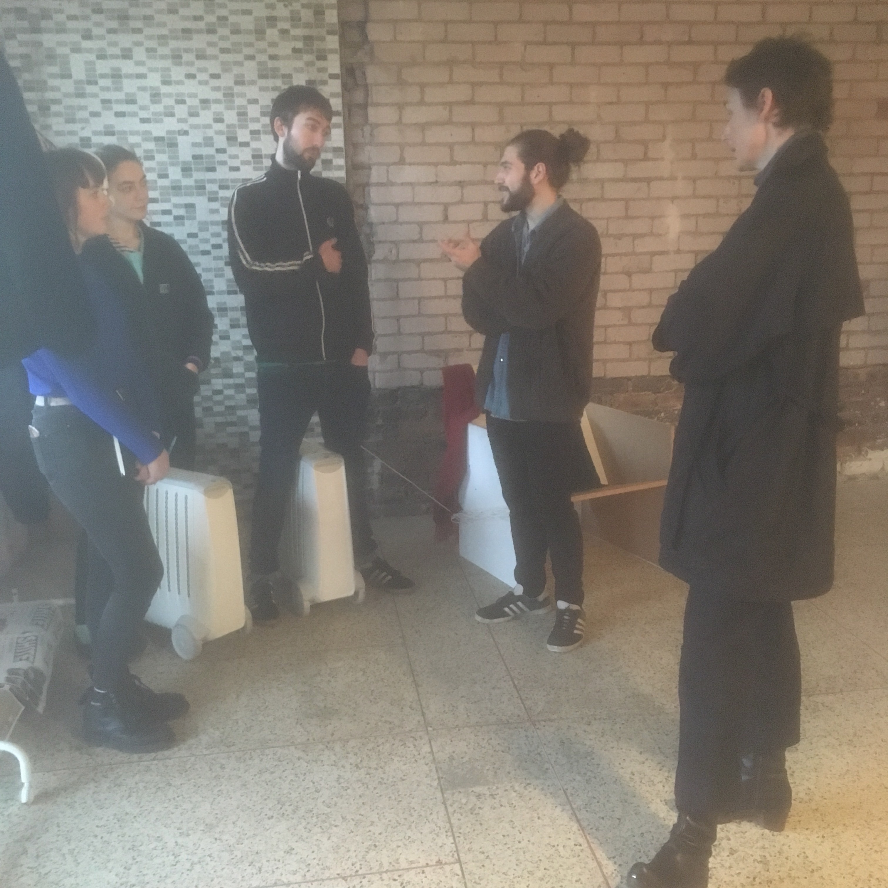 It was an enormous pleasure to welcome Dr Jacqueline Donachie to the Granton Campus of Edinburgh College today where she gave a fantastic talk about her approach to research practice, public art, social engagement, Sculpture, drawing and her current exhibition ‘Right here among them’ at the Fruitmarket Gallery in Edinburgh. After the talk Jacqueline took time to visit student run EPOCH8 gallery where she discussed her time on the Transmission Gallery committee and shared some great tips on artist run spaces. There was also time for a few tutorials with CAP1&2 students.