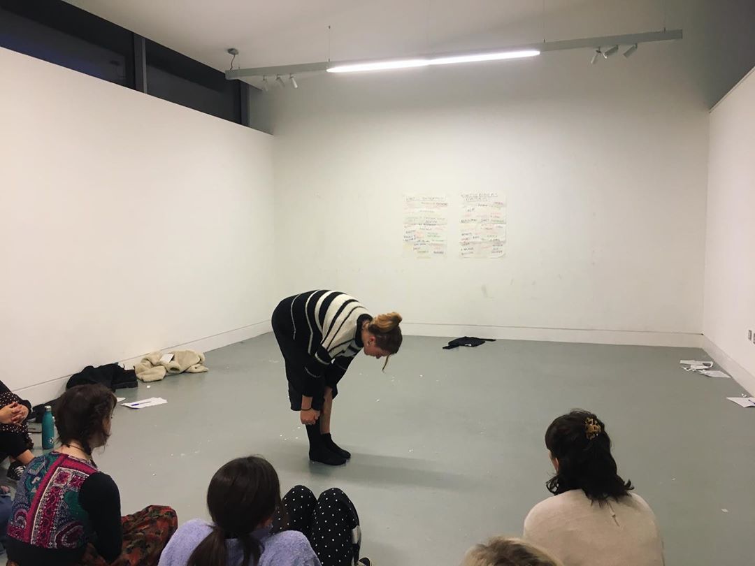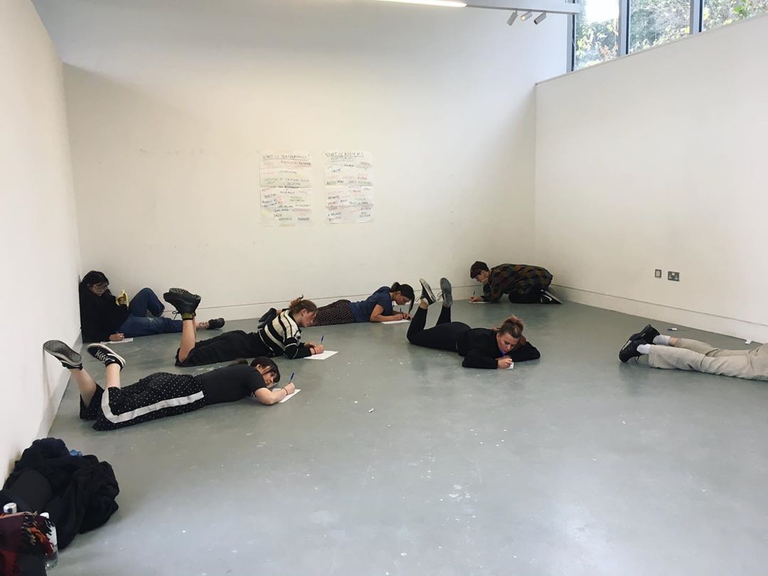 It wasnt long before Samantha was working very closely with the CAP team and students by joining tutorials and group crits offering great advice and support to everyone. It wasnt long before they were maticulously planning a series of workshop examining “The Body as Material” through which the participants and Samantha explored the potential of their own phyisicality as well as that of the spaces and circumstances they were in.